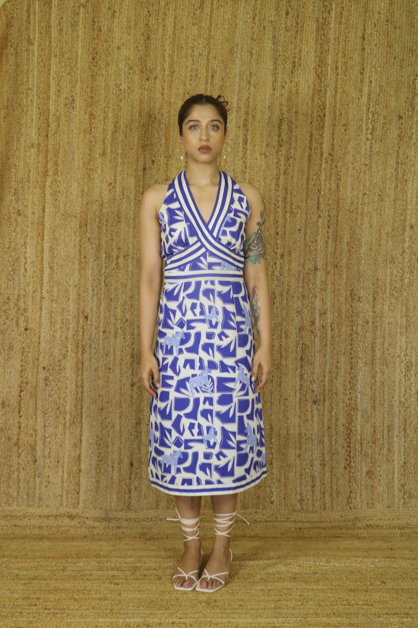 The Jaminique Blue Halter Neck Dress is inspired by Jamini Roy’s artworks over the years and the significance of horses in his paintings, showing the confidence and strength of women. Perfect for a day by the beach, extremely comfortable and flowy. Dyed with Azo-free, non-toxic dyes.